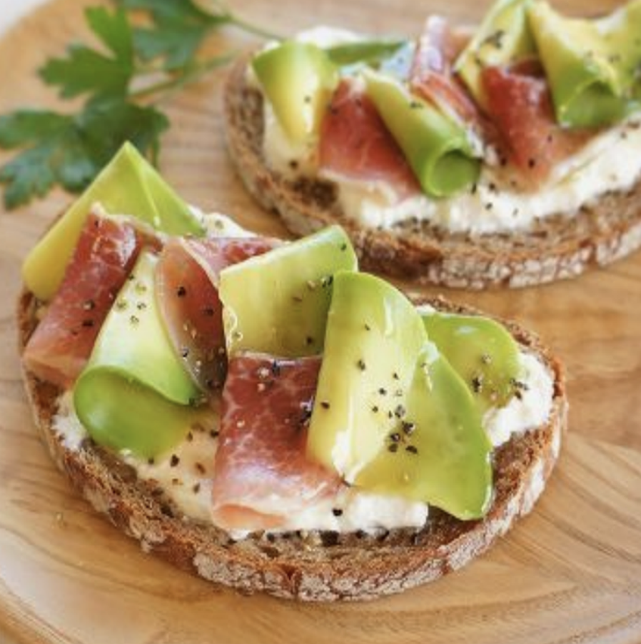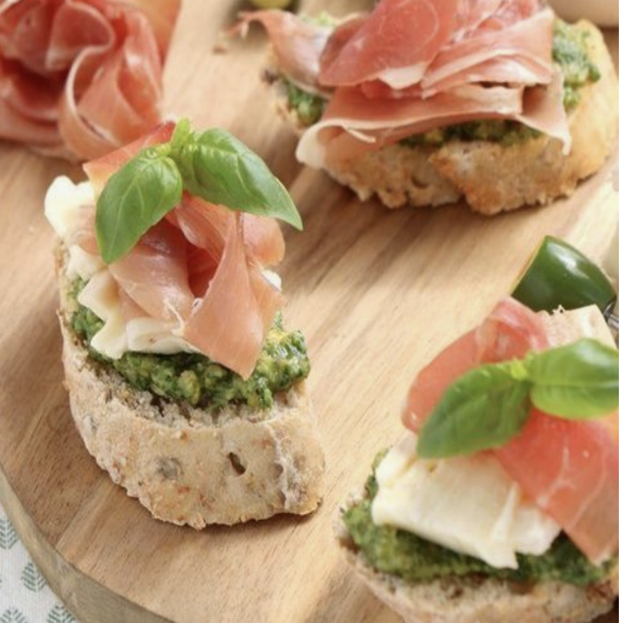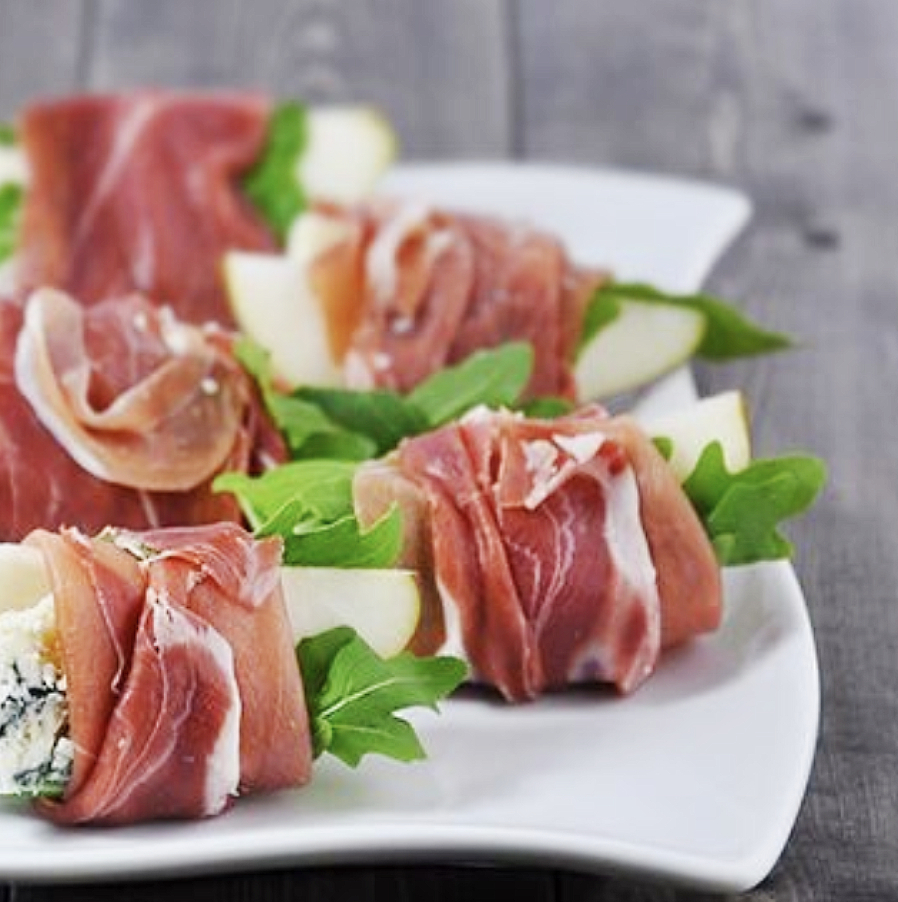 Канапе с грушей, феттой, прошуто и зеленью 20г