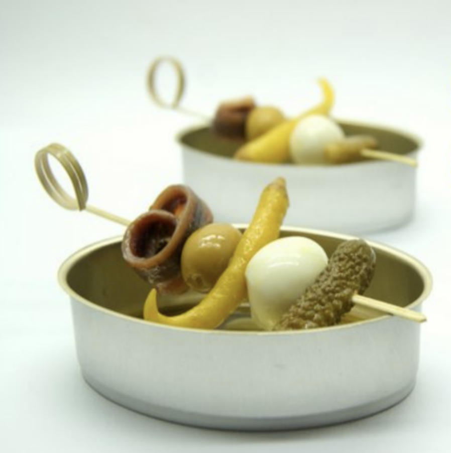 Канапе с хамсой, оливкой, маринованным перцем, яйцом и огурцом 20г