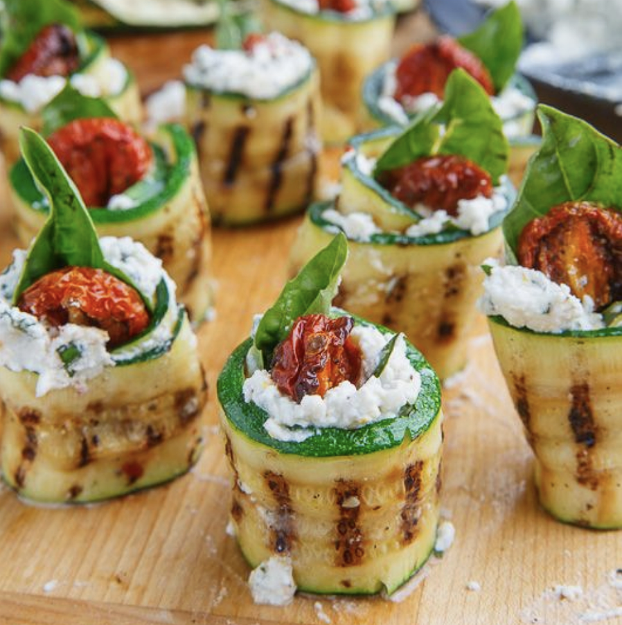 Рулет из кабачков с козьим сыром, зеленью и вялеными томатами 30г
