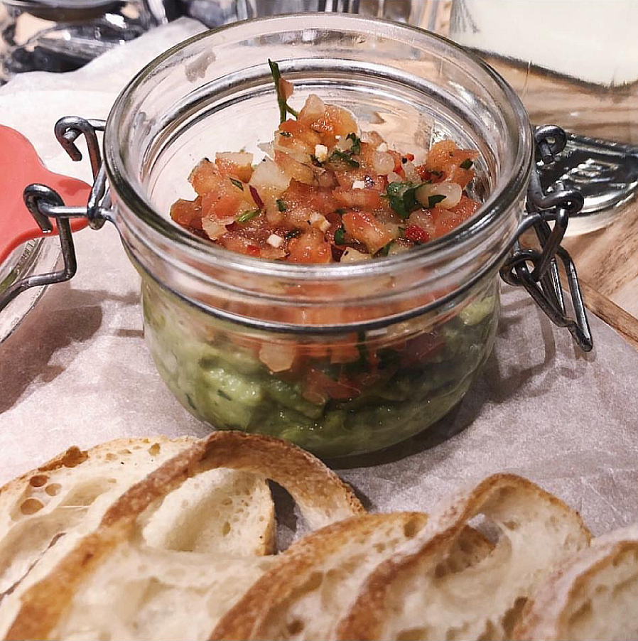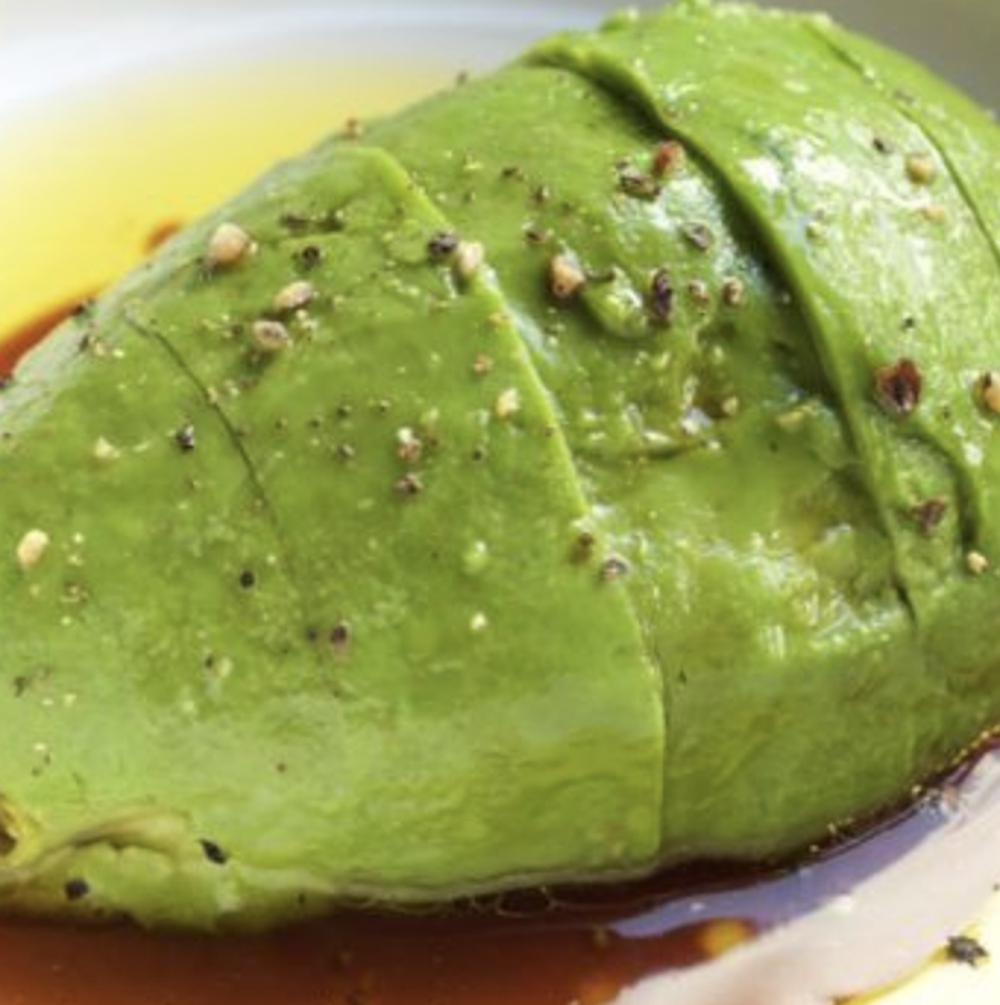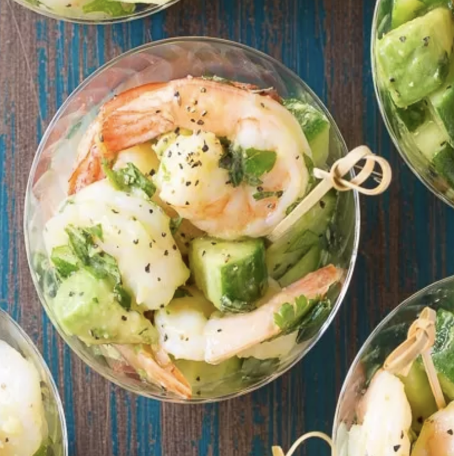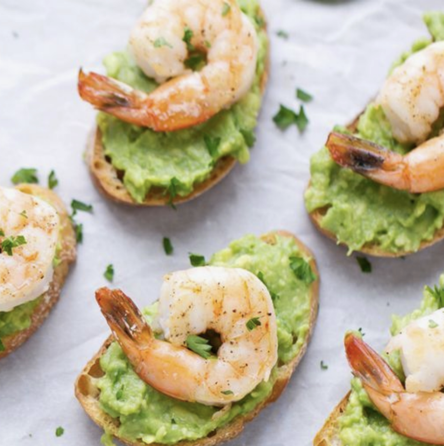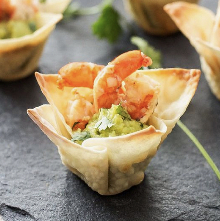 Тарталетка с муссом из авокадо и жаренными креветками 30г