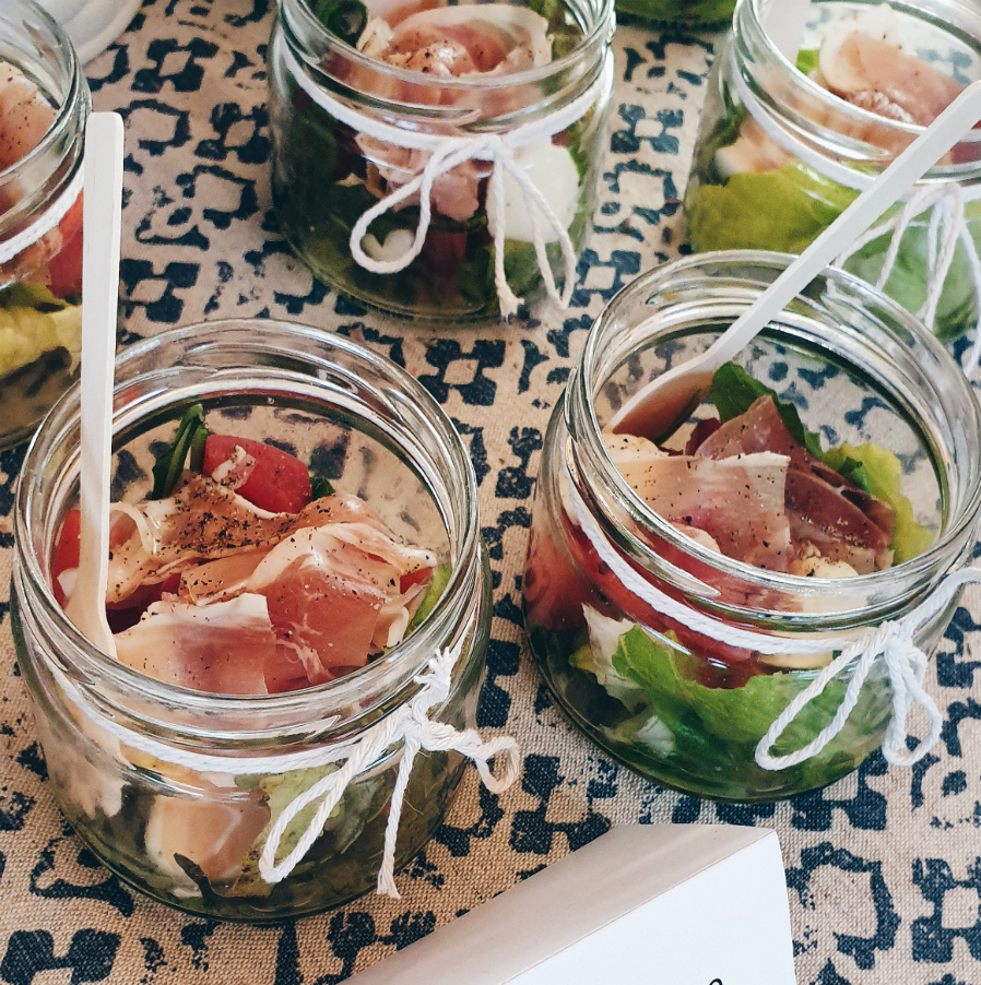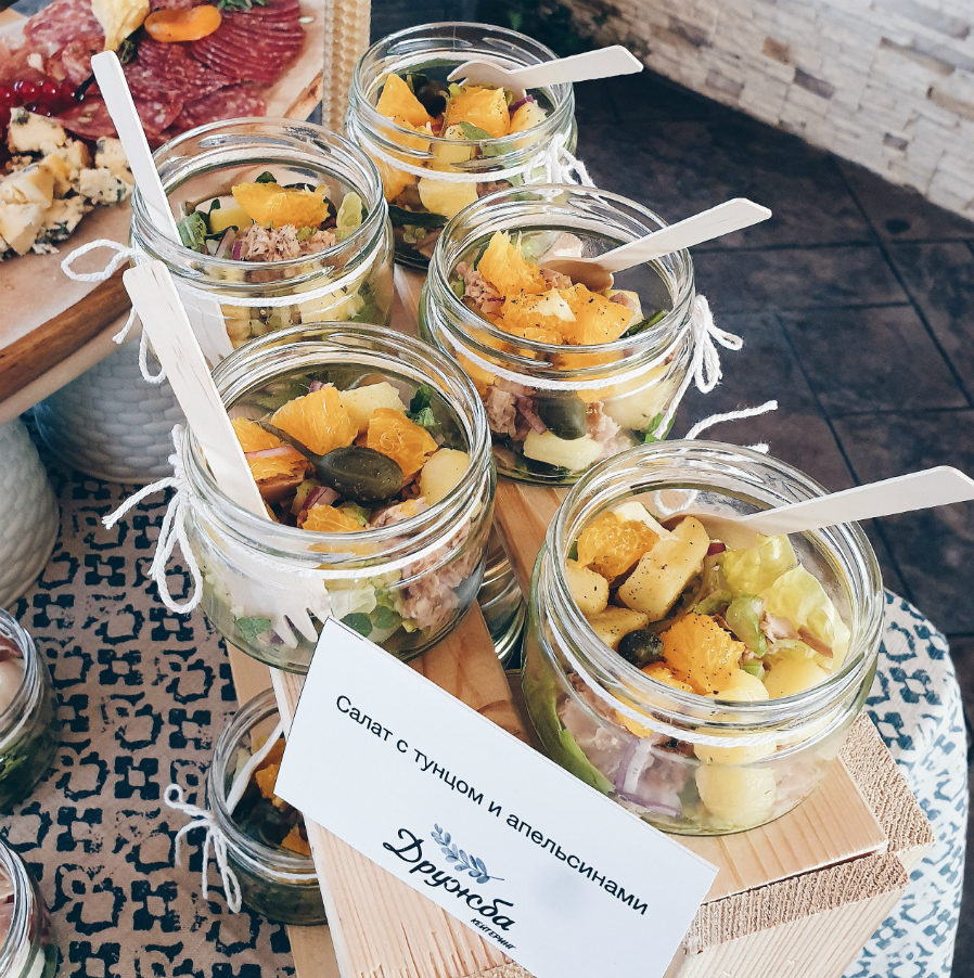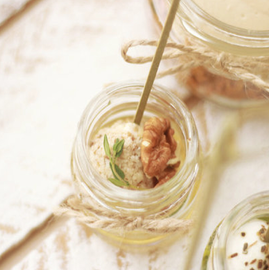 Канапе в баночке с моцареллой, мёдом и орехами 20г