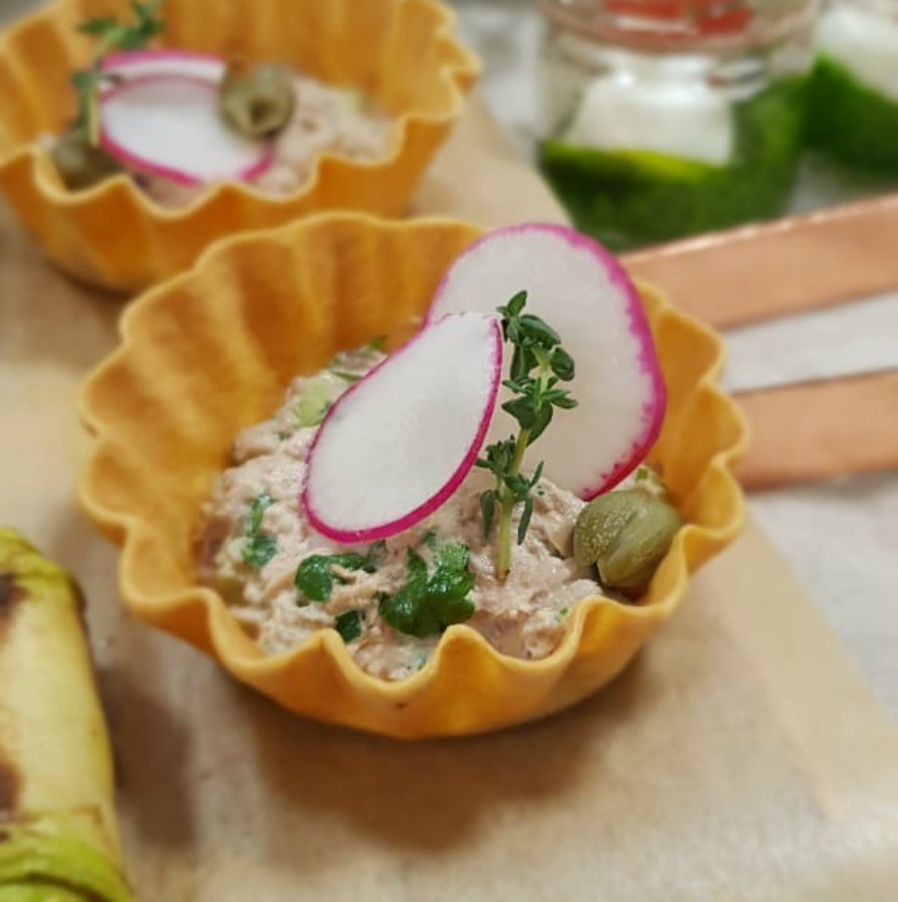 Тарталетка с паштетом из тунца, каперсами и редисом 30 г