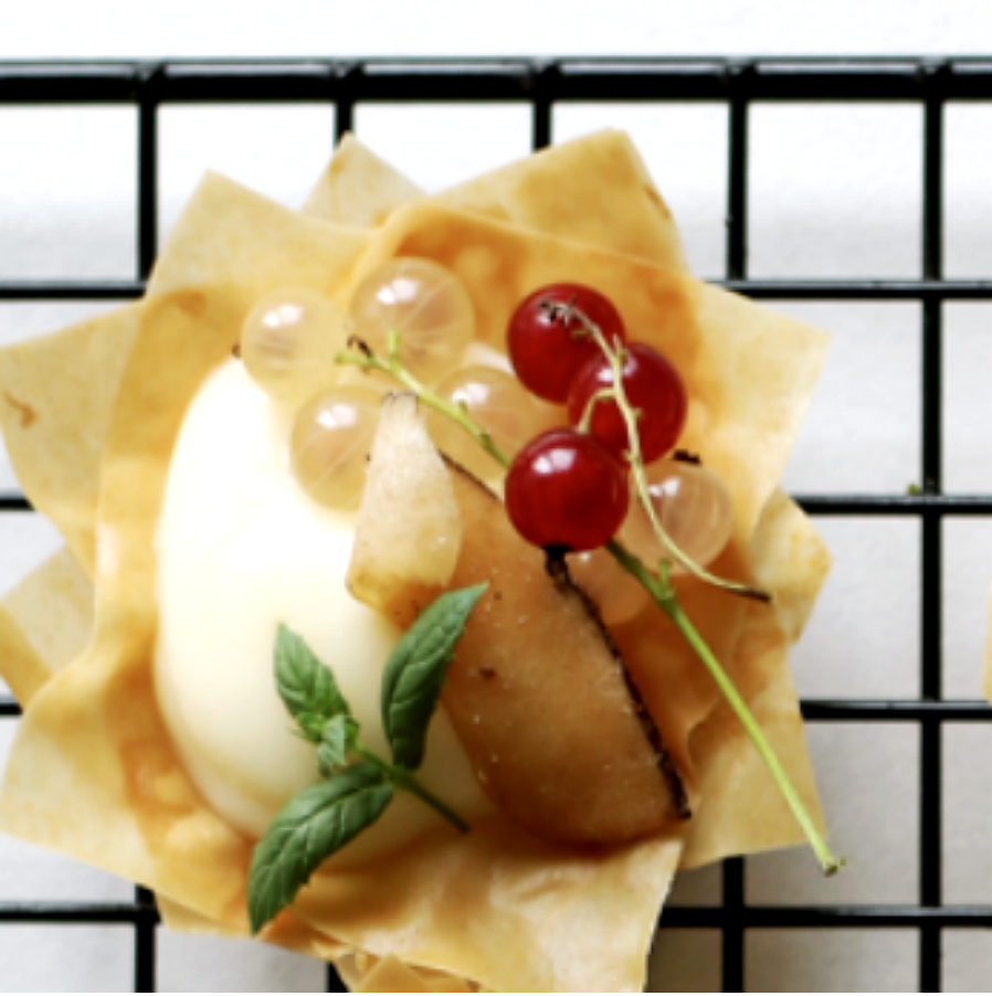 Тарталетка с муссом из рикотты и запеченной грушей 23г