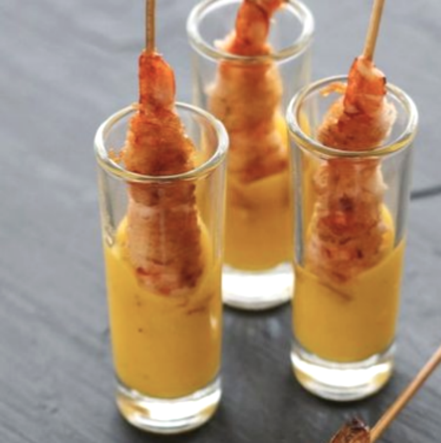 Канапе с жареной креветкой и соусом из запеченных перцев 20г
