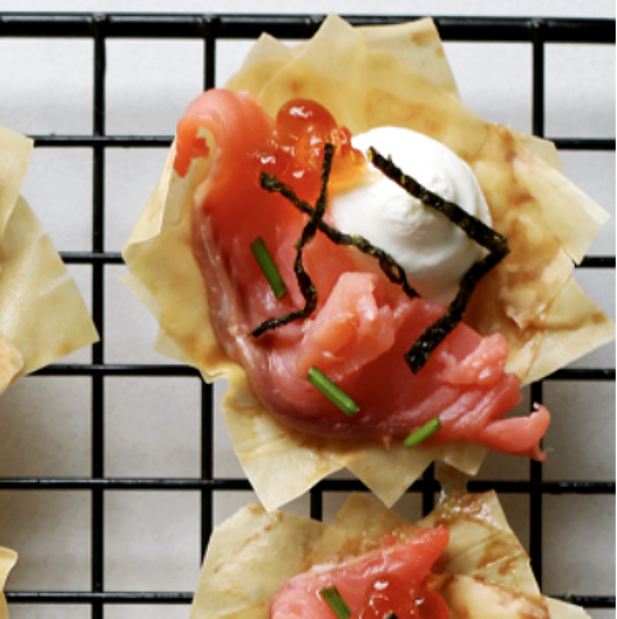 Тарталетка с креметтой, сёмгой и красной икрой 23г