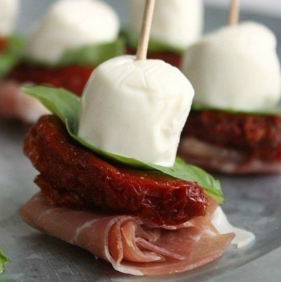 Канапе с прошутто, вяленными томатами и моцареллой 20г
